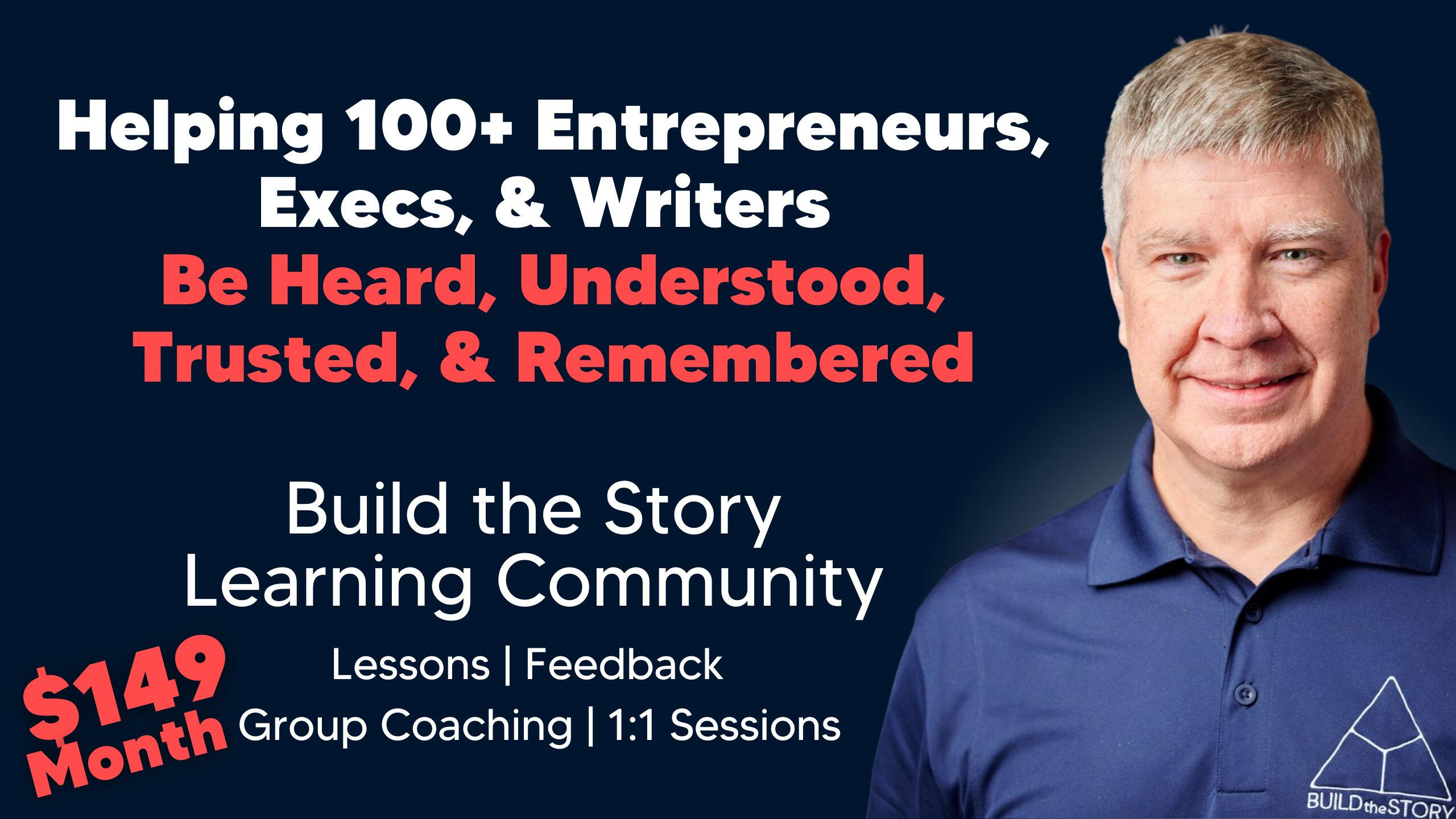 The Build the Story Apprenticeship and Learning Community helps good copywriters, teachers, entrepreneurs, and even good storytellers become GREAT storytellers.Sure, there is a course...and the most pivotal ones are taught by a live instructor in a small-group setting.But, more importantly, there is practice and feedback.Each lesson has an assignment, and I give you the actionable, detailed feedback you need to improve. Otherwise, you are just spinning wheels rather than stories.Also, each month, I host live, small-group sessions where I answer questions, coach you, and challenge you.If you need some 1-on-1 time to work on something with me, I'll give you a link for that too.Just doing a course and watching videos is fine for some things, but if I really want to learn a skill, I want to learn from a person.I built exactly that here...and at a price that is still accessible.